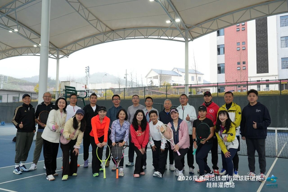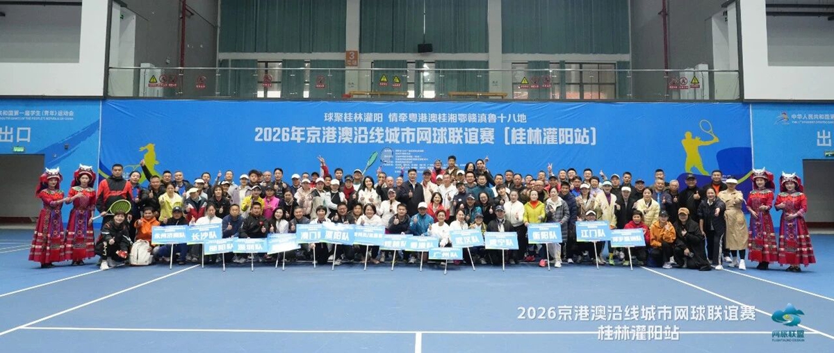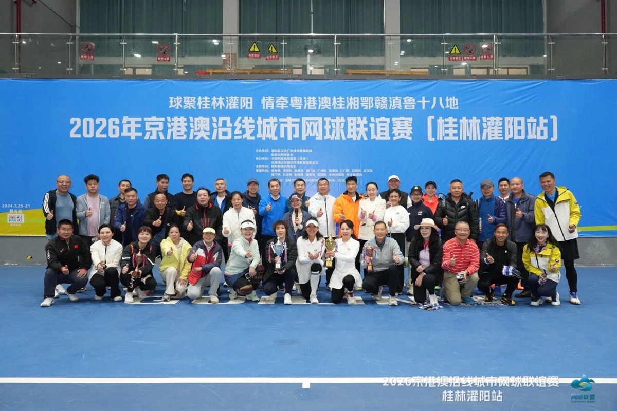 3月22日,2026年京港澳沿线城市网球联谊赛桂林灌阳站比赛,在灌阳县网球中心落幕。本次比赛由灌阳县文化广电体育和旅游局、桂林市网球协会主办,全国网球旅游联盟(桂林)、京港澳沿线城市网球联谊赛组委会协办,来自香港、澳门特别行政区以及广东、广西、湖南、湖北、江西、云南、山东等7省(区)18个城市的16支队伍,共计177名网球选手汇聚灌阳。